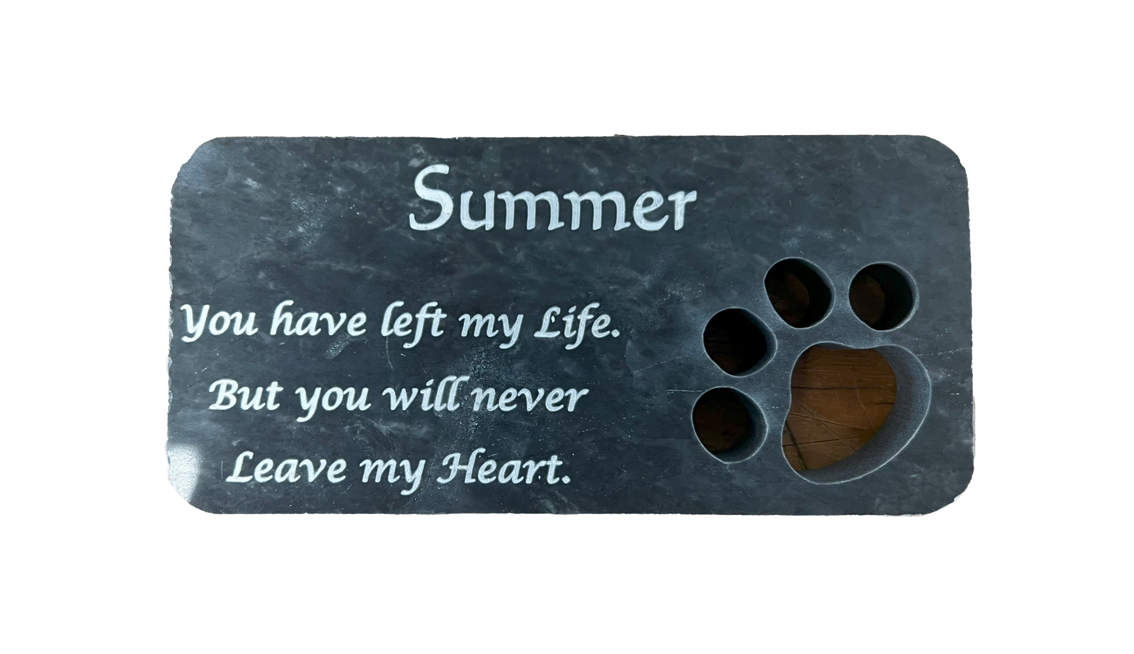 We all know that pets our more than animals, they are our furry family members. These stone products have been designed to honor and memorialize our beloved pets, whether they are still with us or have passed on. Personalization options exist, allowing you to add your pets name to the item.
