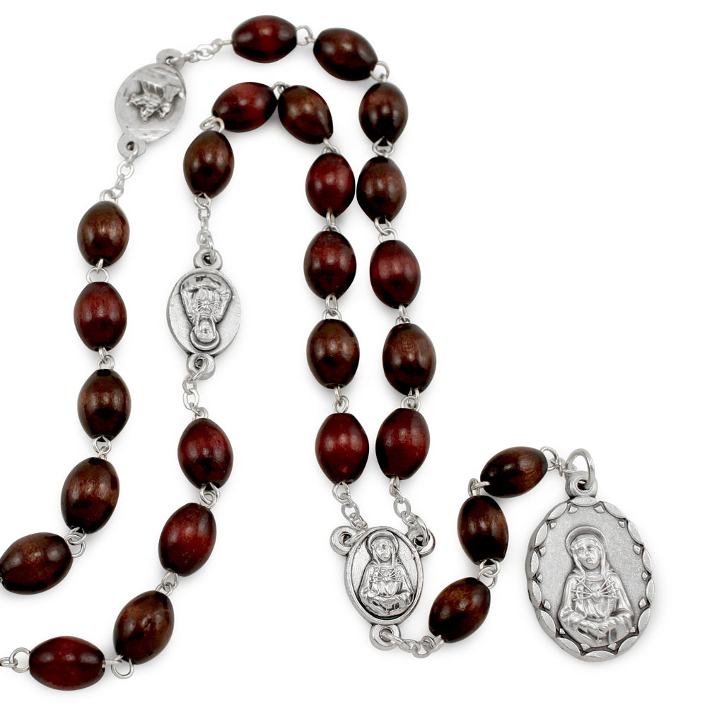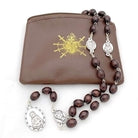 Seven Sorrows of Mary Rosary Chaplet Oval Brown Wooden Beads and Matching Rosary Pouch- Servite Rosary