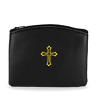 Genuine Leather Rosary Pouch Zipper Design with Cross Imprint - Black