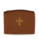 Genuine Leather Rosary Pouch Zipper Design with Cross Imprint - Brown