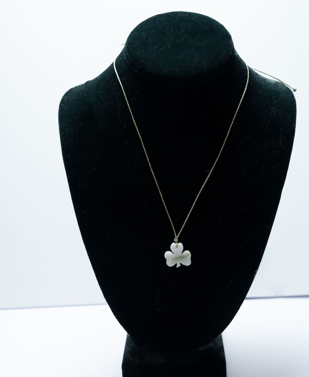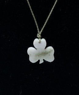 This shamrock necklace come on a braided nylon string, it adjusts from 17" to 19". The shamrock is made from authentic Irish marble and measures 3/4" by 3/4".